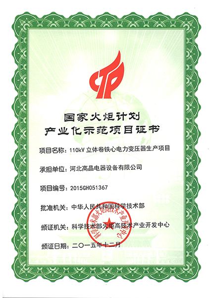 National Torch Plan industrialization project certificate